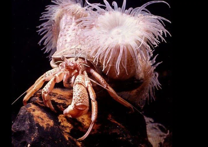 Ещё анемоны обожают дружить с раками-отшельниками. Членистоногие берут и сажают актинию прямо себе на панцирь! От такого союза в плюсе остаются все. Раки получают защиту от атак сверху — их прикроют ядовитые щупальца. А актиния получает способность к активному передвижению.