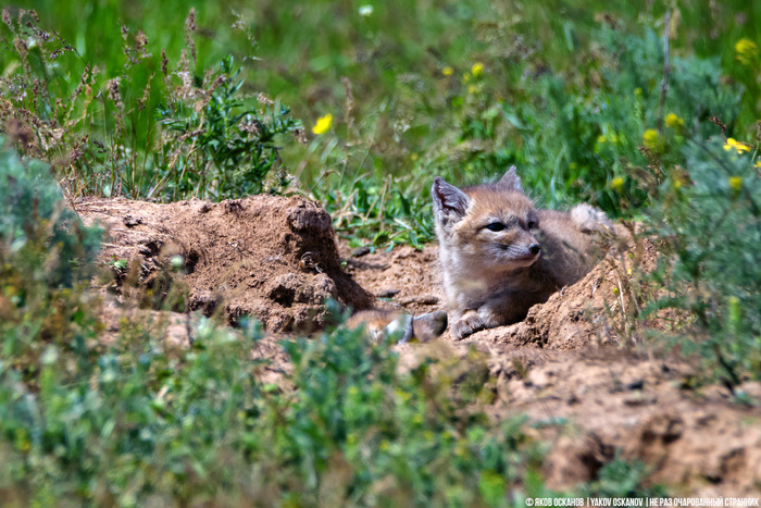 Это корсак. Степная лисица. Я пару лет пытался подступиться к съёмкам этих замечательных животных, но всё никак не находил то времени в нужный сезон, то самих животных.