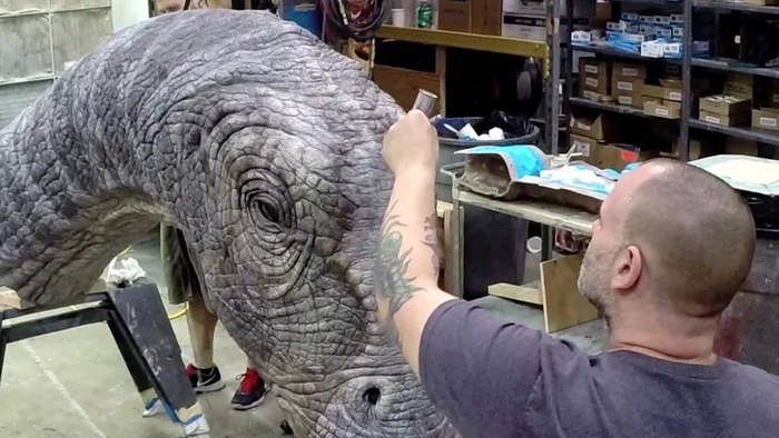 В «Мире юрского периода» Колин Треворроу сражался за включение аниматроники в фильм, но все, что он сумел отстоять, — это голова и шея умирающего апатозавра (туловище дорисовали специалисты из ILM). Небольшой кусок динозавра обладал полным функционалом пьяного футбольного болельщика — сопел, фыркал и подмигивал. На крупных планах подобный реквизит демонстрирует куда более убедительную игру, чем компьютерная графика. «Мы сняли репетицию и показали режиссеру с продюсерами. Думаю, их воодушевило, насколько эмоциональной может быть эта сцена», — вспоминает Джон Розенгрант, совладелец компании Legacy Effects. Присутствие куклы обнаруживает новые грани и у актеров, которым трудно раскрыть всю глубину чувств, когда они работают с пустотой.