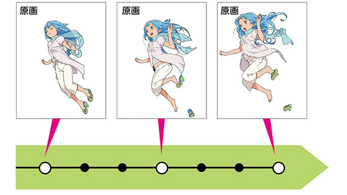 Вторые - занимаются исключительно персонажами и другими движущимися предметами, предполагаемыми в будущем сериале или фильме, полностью концентрируясь на них. Однако в их задачу не входит нарисовать сцену от и до, их стезя - это ключевые кадры аниме: движение, эмоции, действия. Чтобы проще понять, что это такое - представьте маятник. Вот этот маятник нужно нарисовать в двух "мертвых" точках, максимально точно и качественно. Разумеется, чем кадр сложней и динамичней - тем больше ключевых кадров требуется, но в среднем - это не более 10% от всех имеющихся, что, на самом деле - ой как не мало.