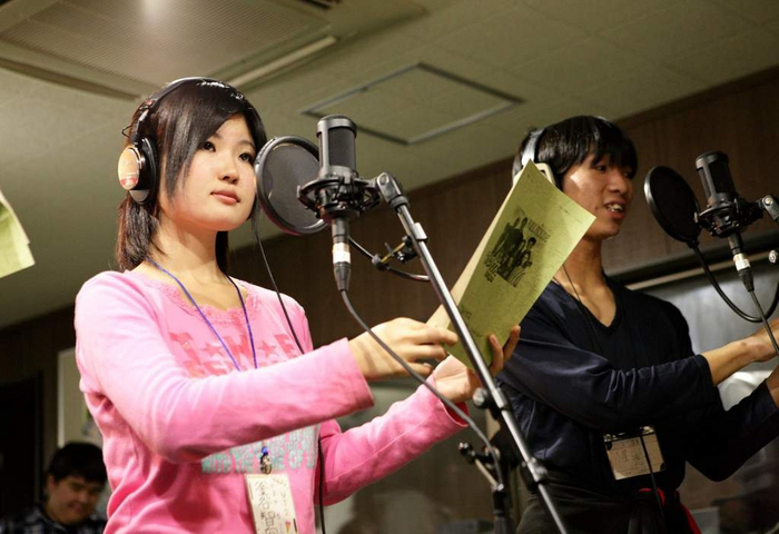 Работают сэйю, это те самые милые (и не очень) няшки и куны, которые повизгивают у микрофона. Еще один фетиш современной Японии, но о нем уж как-нибудь в другой раз. Интересней, во всяком случае для меня - выглядит работа так называемых "шумовиков". Это те, в чью ответственность входят все остальные звуки, кроме диалогов и сандтрека: шаги, звук снега, дождя, ветра, шум шин, выстрелы оружия... Многие сэмплы можно взять в открытом доступе, причем бесплатно, можно купить в надежде, что он будет оригинальным, но уважающие студии их... Записывают самостоятельно. Просто представьте один лишь инвентарь, нужный для подобного. Реально круто!