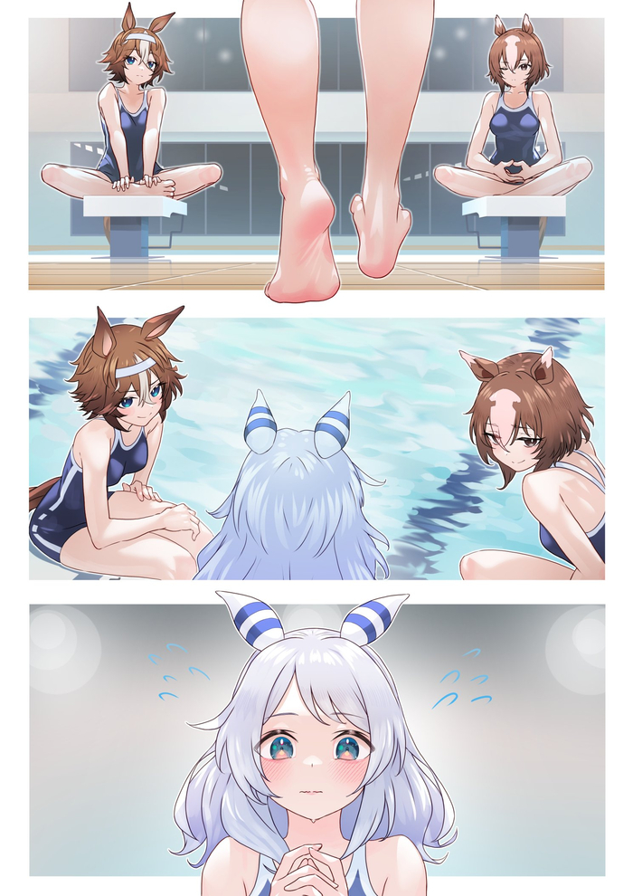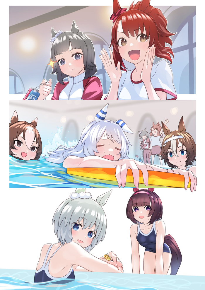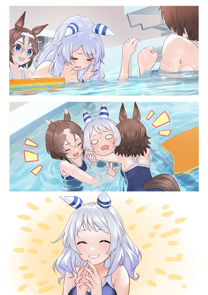 Арты отсылают к проблемам ИРЛ Хиши Миракл с плаваньем. Хиши Миракл очень плохо плавал(и вряд ли он стал лучше в этом на старости лет). Когда он проходил реабилитацию после десмита в Иваки, он плавал так медленно, что персонал центра подгонял его звуками жестяных банок.
