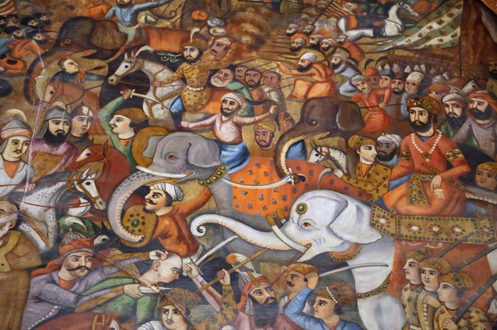 (на картине Надир надирает другому шаху некую часть тела). А прибытие посольства было впечатляющим.