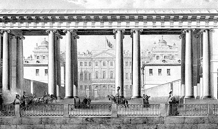 Вид на дворец с Фонтанки остался лишь в проём колоннады, соединяющий корпуса Кабинета.