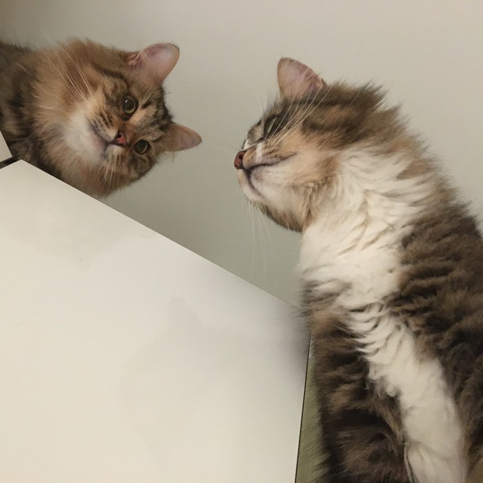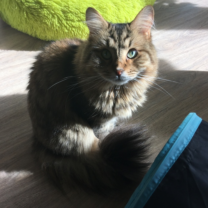 Теперь живет с другими котокошками. Оч спокойный и ручной, приходит ласкаться на кровать.