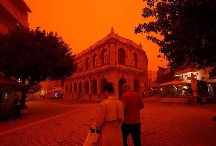 Это особенно заметно на острове Крит в Греции, где небо стало ярко красным.