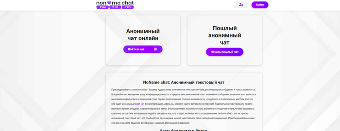 Nekto.me давно ассоциируется с анонимными чатами и быстрым поиском случайного собеседника. Здесь не нужны анкеты и фотографии — достаточно просто подключиться и начать диалог. Такой формат делает сервис удобным для тех, кто хочет спонтанного общения или лёгких знакомств инкогнито.