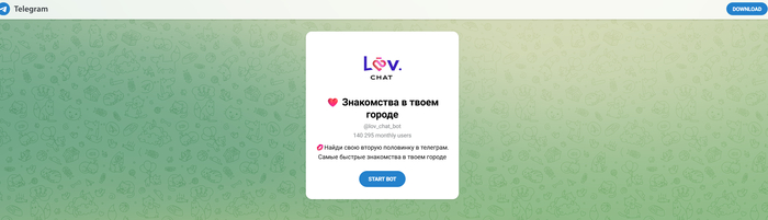 Не отдельный сайт, а бот в Telegram, который позволяет быстро начать диалог с новым человеком. Всё основано на обмене анонимными сообщениями — профиль создаётся в рамках мессенджера, без лишних данных, но и без расширенных алгоритмов или фильтрации.