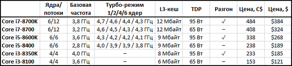 Семейство энергоэффективных процессоров Core восьмого поколения, о котором идёт речь в анонсе, включает в себя четыре представителя U-серии, обладающих 15-ваттным тепловым пакетом. В него входят четырехъядерные процессоры с поддержкой технологии Hyper-Threading, младший из которых – Core i5-8250U – имеет базовую частоту 1,6 ГГц с возможностью её увеличения в турбо-режиме до 3,4 ГГц, а старший – Core i7-8650U – обладает номинальной частотой 1,9 ГГц с возможностью авторазгона до 4,2 ГГц.