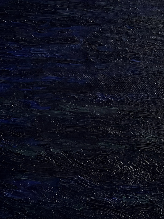 Мотив основан на натурном впечатлении о поездке в Анталию. Вечер. Темная полоса шумного залива, разделяющая берега. Глубокая стихия, разделяющая людей.