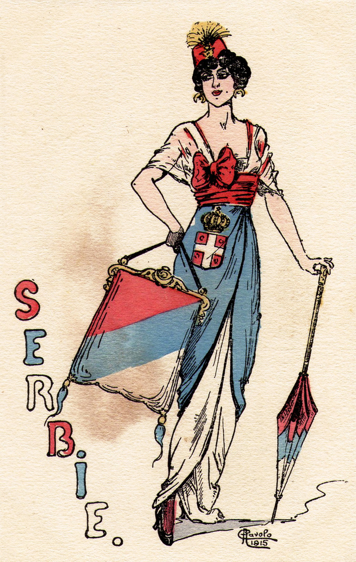 Надпись на попах слева направо: "Сербия,Россия,Франция, Бельгия,Англия"