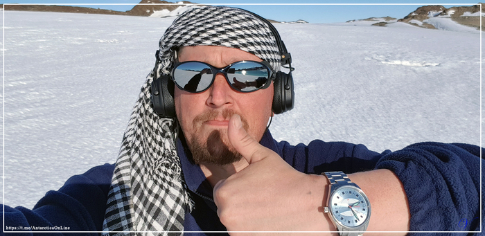 Кстати, арафатка в Антарктиде очень удобная вещь. Это тебе и шапка, и защита лица от солнца, если крем забыл. И в ней не жарко и не холодно..