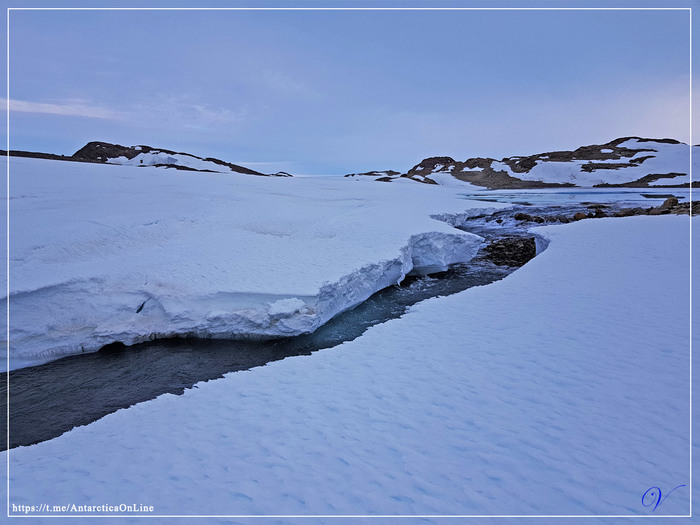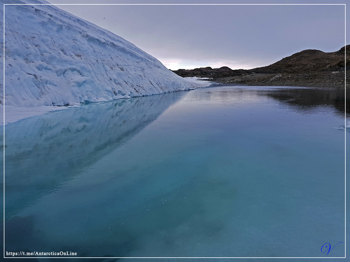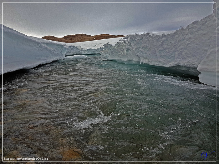 Надо отметить, что со скал был отчетливо слышен шум падающей воды. Его теперь слышно со всех со всех сторон. И если в Питере летом поют птицы, то в Антарктиде летом поёт вода вместо птиц.