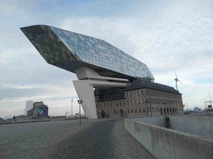 Цель №1 - Здание Port of Antwerp (Havenhuis). Это, поистине, впечатляющее здание, разработанное в проектном бюро Zaha Hadid Architects. Выполнено в виде корпуса корабля из ограненного алмаза. Здесь символизм во всем: Антверпен является ведущим мировым центром огранки алмазов и корабль, как основа морской торговли, порт является вторым по величине в Европе (после Роттердама).
