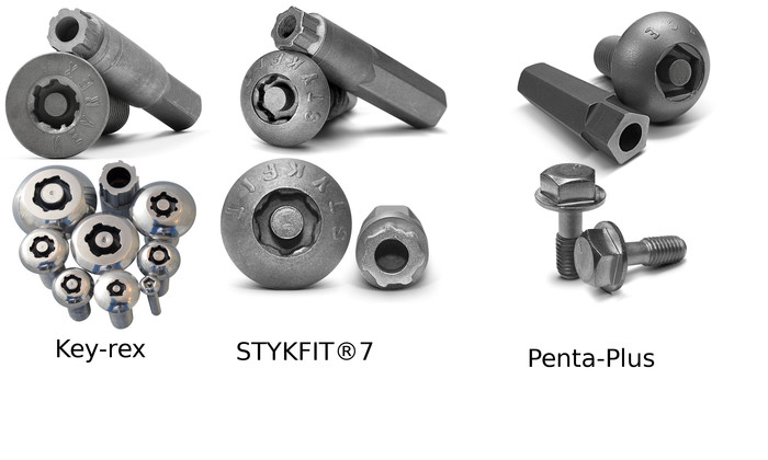 Для защиты от желающих просто вставить кончики круглогубцев и повернуть придумали вариант с конусами в углублениях (Tricone® Security Bolt):