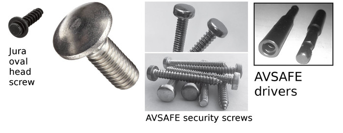 В дополнение к прошлому посту - не только в кофемашинах используются овальные формы головки. Овал не самая популярная форма антивандальной головки - требуется высокая точность изготовления для соблюдения минимального зазора с инструментом. Малейший люфт и поворотом биты овал превратится в круг. Также выпускаются винты с овальной головкой AVSAFE.