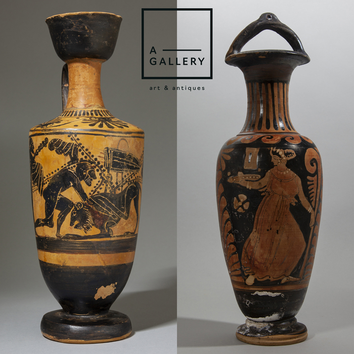 Для примера приведем чернофигурный и краснофигурный сосуды из коллекции A-Gallery, Москва.