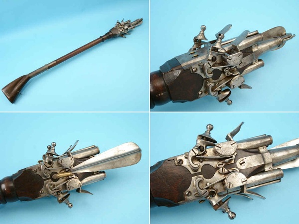Испания, 18 век. Копьё с четырьмя кремнёвыми пистолетами.