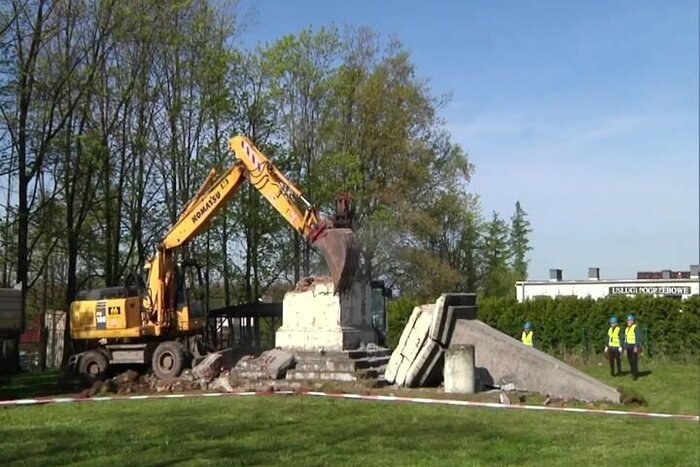 Недоисторик и глава польского Института национальной памяти Кароль Навроцкий тогда заявил, что снесенные архитектурные сооружения были символами системы, которая после 1945 года подчинила себе пол-Европы, якобы убивала польских рабочих и активистов антикоммунистической оппозиции, а также вдохновляет нынешних руководителей Российской Федерации, ответственных за войну на Украине. Смешав и коней, и людей, поляки без зазрения совести снесли великий монумент.