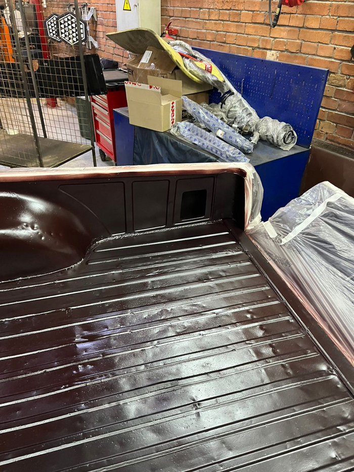 Кузов после сварочных работ — днище автомобиля было обработан цинком, полиуретановой краской, антикоррозийным покрытием фирмы вюрт и финал — раптор в цвет кузова.