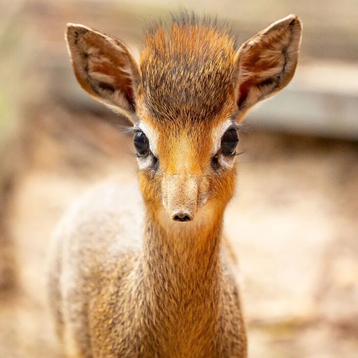 Её звучащее название: дикдик. Запоминается легко, как и внешний облик животного. Прежде всего, дикдик невелик, да что там — просто мал. Будучи полорогим парнокопытным, он является родичем быков, козлов и баранов, а особенно антилоп, к систематической группе которых и принадлежит. Но если антилопа канна из Центральной Африки может достигать высоты в холке в 175 см при длине тела 290 см и массе 900 кг, то соответствующие габариты самого крупного дикдика – 40,5 и 67 см на 6 кг живого веса. Как говорится, почувствуйте разницу!