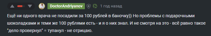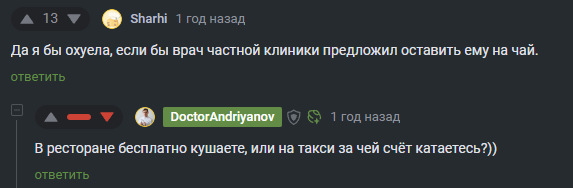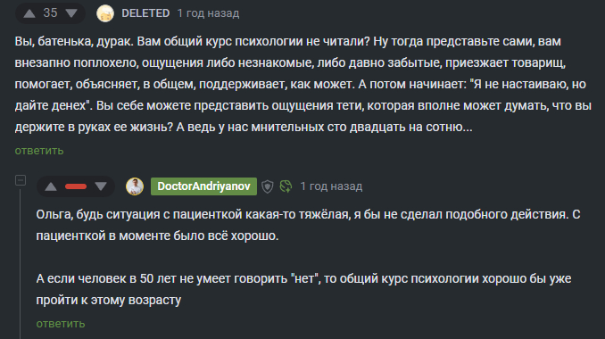 В комментариях ему популярно объяснили, что поступок как минимум кринжевый, а то и хуже. Доктор тогда страдал "синдромом вахтера" в меньшей форме и вместо того чтобы каждого сомневающегося в его мудрости кидать в бан пытался защищать свое попрошайничество граничащее с вымогательством потрясающими аргументами:
