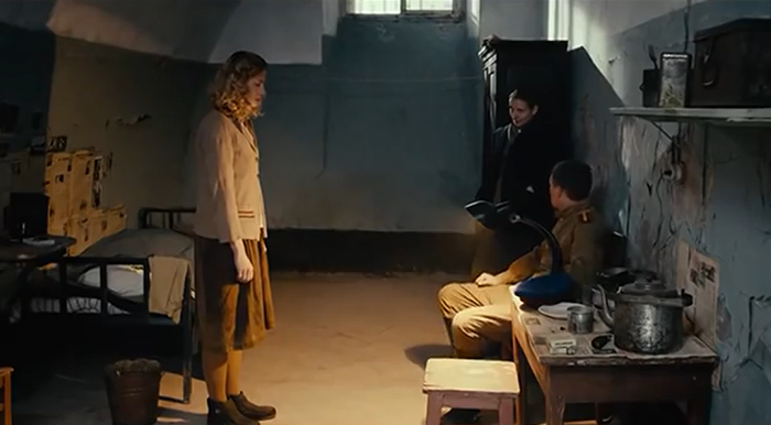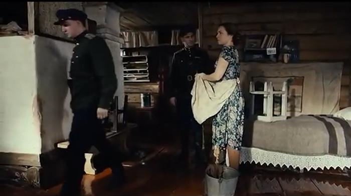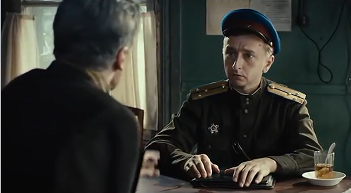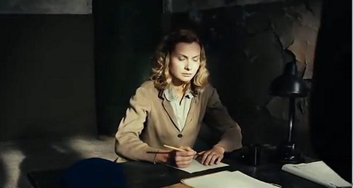 Ну а злобные упыри из НКВД, уже добрались до деревни, где некоторое время жила Джульетта. Лейтенант допрашивает председателя, о трудовой деятельности итальянки, тот рассказывает как она на поле работала, потом в школе преподавала.