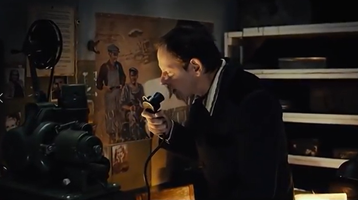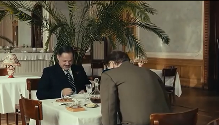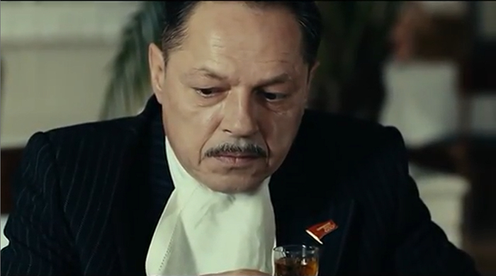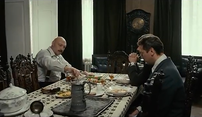 Затем у киномеханика случается истерика, он называет всех сидящих в зале людей собаками рваными, после чего дикие упыри его сильно избивают и кидают в камеру. Первый секретарь обкома, приходит в кабинет к кровавому упырю из НКВД, тот сидит и в одиночку глушит коньяк. Двадцатая пьянка за сериал.