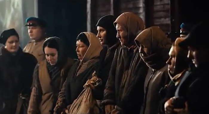 Нам показывают, как женщин заключённых, собираются отправлять по этапу, злобный упырь из НКВД в звании капитана проводит перекличку. Кстати среди женщин, отправляемых в лагеря, находится и вдова первого секретаря обкома, она Джульетту узнает и говорит, что это никакая не Кармухина.