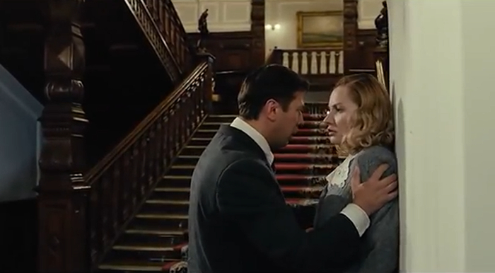 Итальянка гладит пьяному мужу волосы, забирает чемодан и уходит. У себя на квартире, Игорь Скляр угощает итальянку коньяком и шампанским. Уж не знаю стоит засчитывать вот это за пьянку или нет?