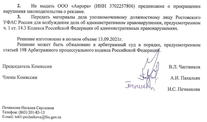 4) На основании норм КоАП РФ и пункта 2 части 1 статьи 33 ФЗ О рекламе возбудить по данному факту дело об административном правонарушении и привлечь виновное юридическое лицо к административной ответственности в соответствии с действующим законодательством.