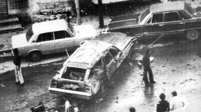 Взорванный автомобиль высокопоставленного лидера ООП Али Хасана Саламе, скончавшегося в больнице в результате полученных травм