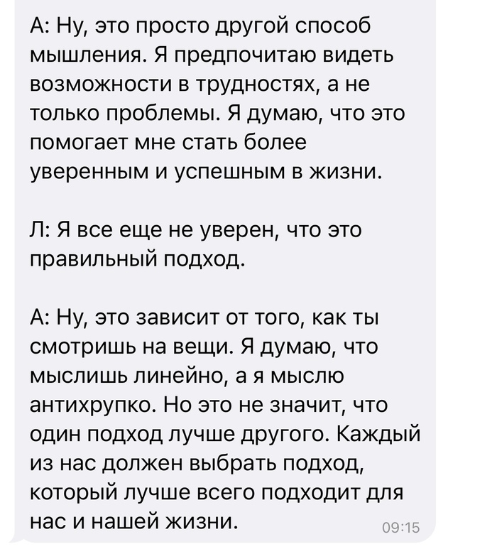 Нам необходимо научиться жить в мире, где нельзя с уверенностью предсказать завтрашний день. Концепция антихрупкости Насима Талеба, согласно которой человек должен научиться не просто выдерживать удары судьбы, а укрепляться за счёт них, становится центральной. Люди, которые принимают неопределённость и находят в ней возможности, живут дольше и чувствуют себя лучше.