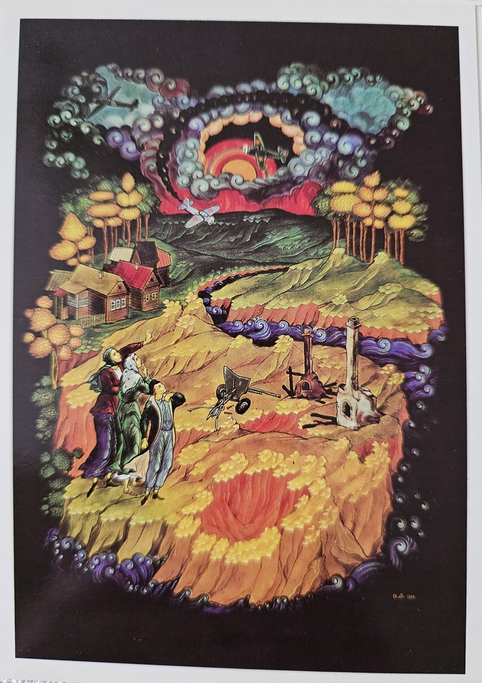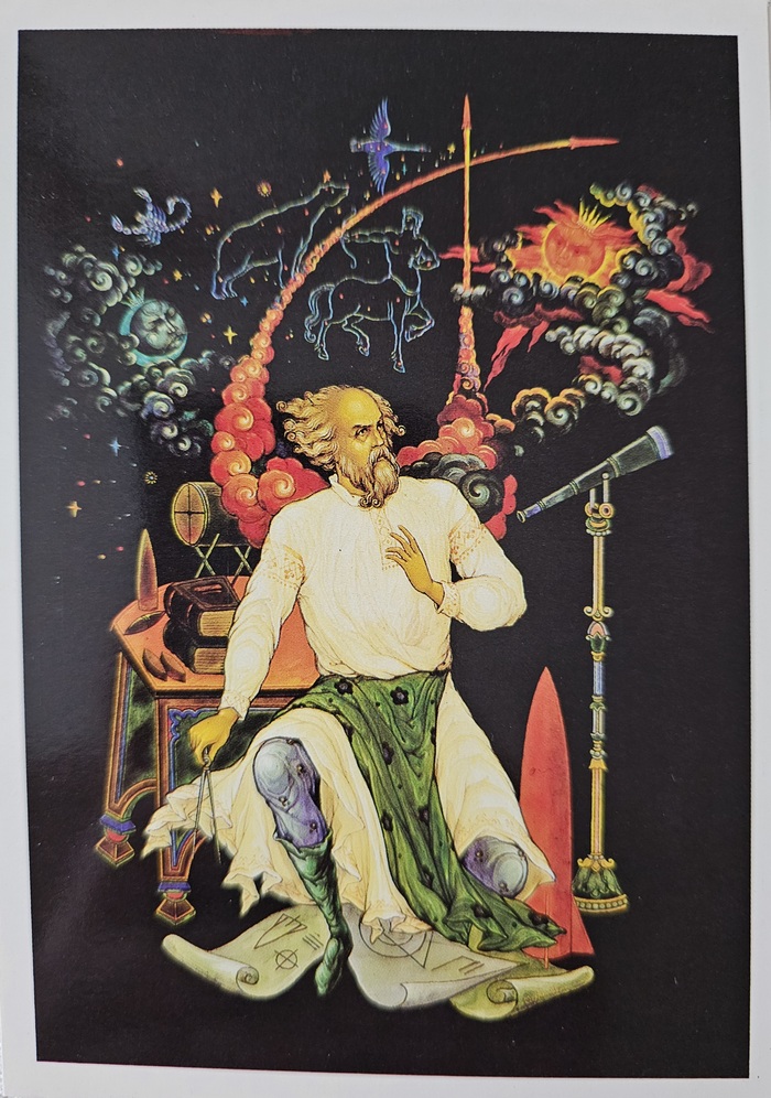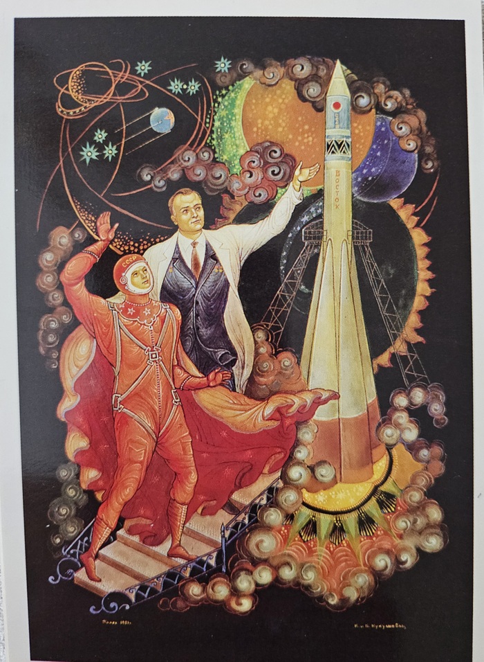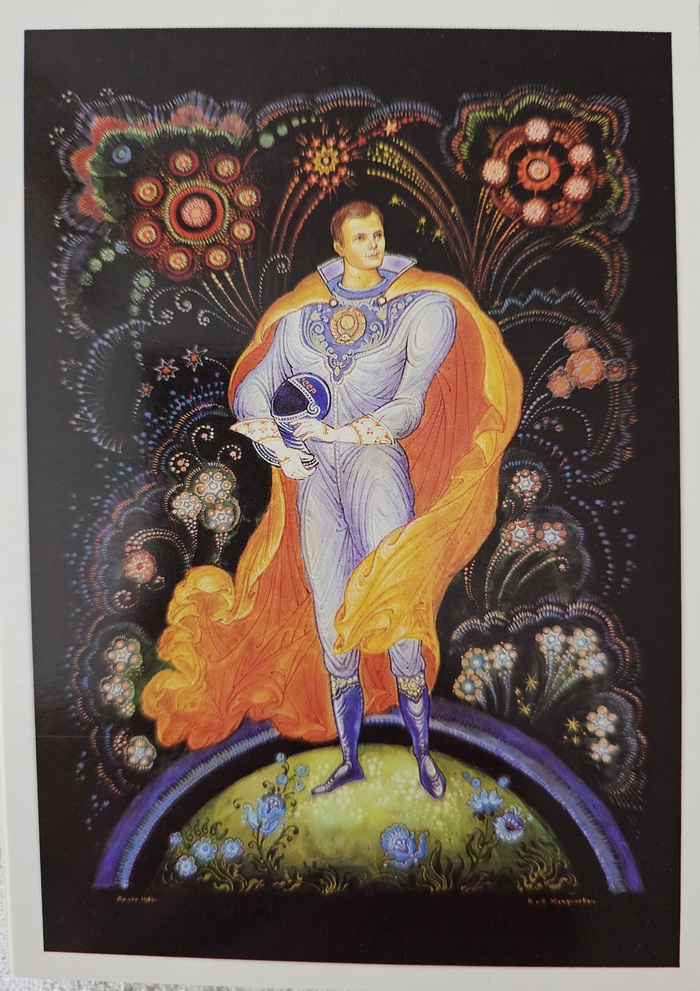 [моё] Юрий Гагарин Открытка Палех Космос Константин Циолковский Печать Старое Антресоли Длиннопост