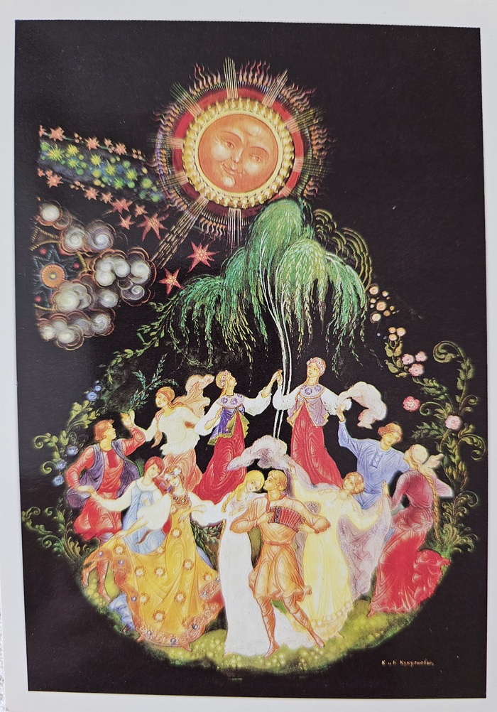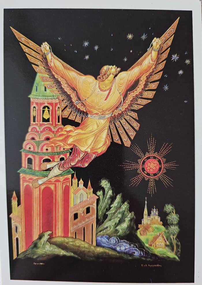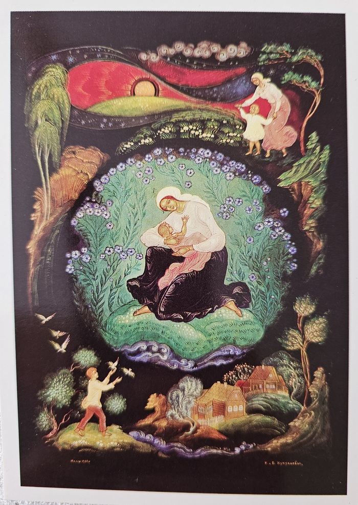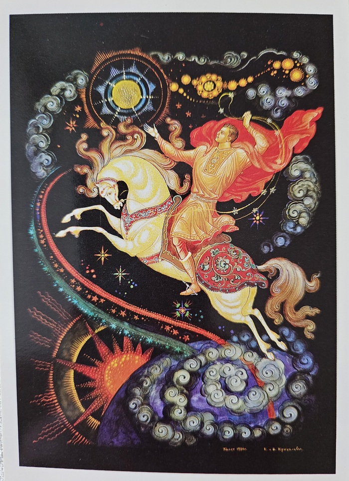 Уважаемые пикабутяне, хочу представить вашему вниманию этот замечательный набор открыток, что мне повезло откопать в старых коробках на антресолях. Набор называется "Сын России" и выполнен в стиле палехской росписи. Прошу наслаждаться.