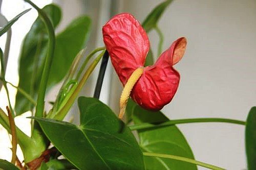 Был куплен за очень мало денег, т.к. были просто листья, цветов не было. Поливал, прятал от солнечных ожогов и вот, спустя почти год - цветёт. Антуриум мой, медузы с ютуба.