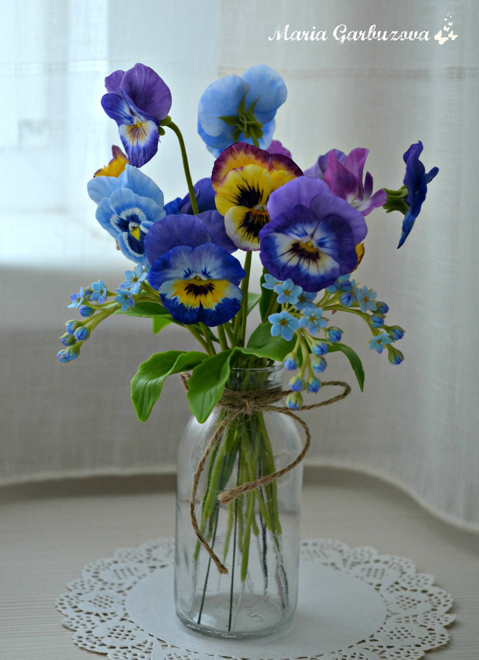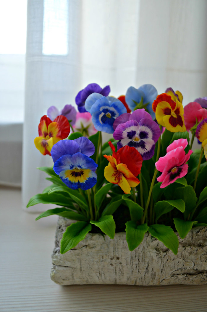 Картина «Анютины глазки», акриловая живопись, соленое тесто