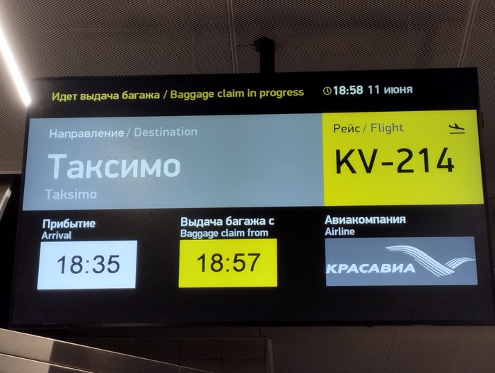 Прибытие в а/п Емельяново в 18:44 (по расписанию: 18:55)