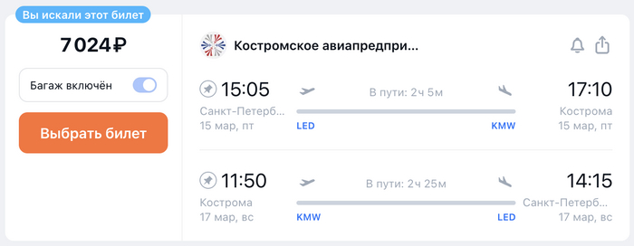 Всем привет! Смотрите какое чудо есть для жителей Санкт-Петербурга и Костромы. Между городами до 31 марта можно полетать на Ан-26! Расписание сделано так, что можно организовать путешествие на выходные дни. Рассказываю подробнее: https://t.me/idubeguedu/5766