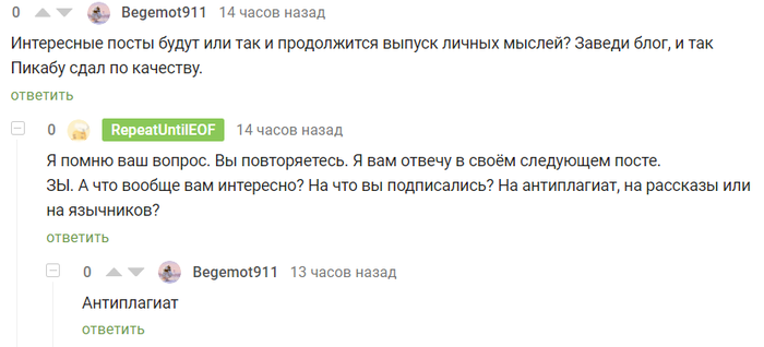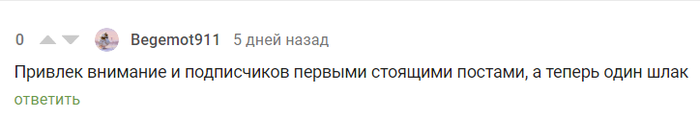 У меня сейчас 30 подписчиков и я понятия не имею кто и на что подписался. В горячем три совершенно разных поста. По стилю, сути и смыслу. Но я дорожу своими подписчиками и всегда готов корректировать свои посты по их первому требованию.