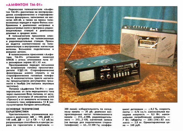 Так же в начале 80х годов были разработаны несколько вариантов телевизоров, совмещенных с кассетным магнитофоном и радиоприемником. По результатам испытаний, в 1982 году было налажено производство телемагнитолы „Амфитон ТМ-01“ на минском заводе вычислительной техники.