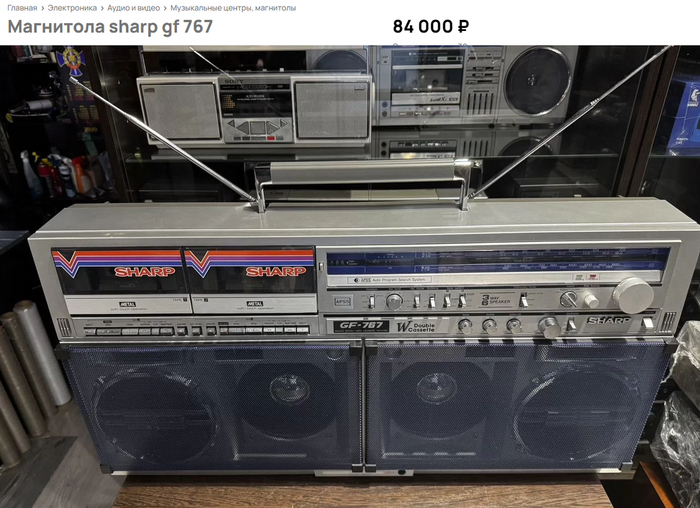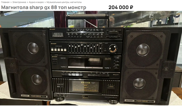 Это ребята из арт студии решили пофантазировать на тему культовых магнитол 80х. Откуда-то достали целых 40 штук SHARP GF 919 . Это по сути SHARP GF 777, но только для японского рынка.