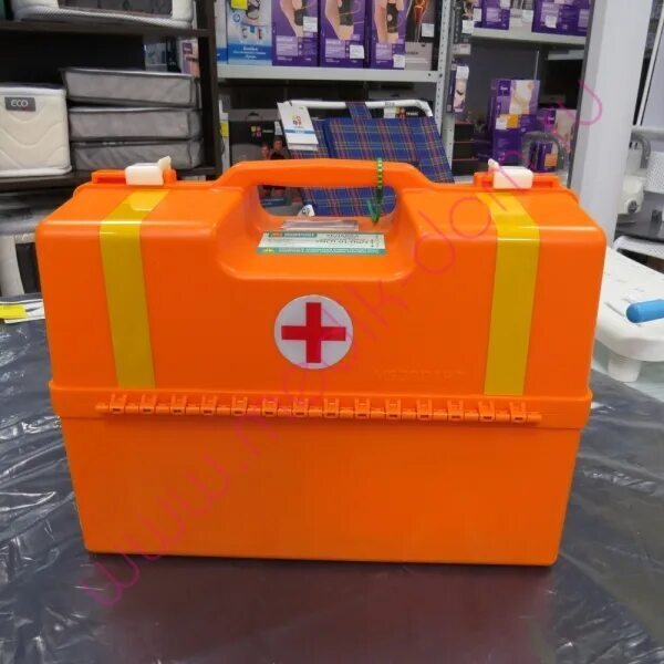Вкратце расскажу что мы имеем в машине для стабилизации пациента. 1.Ящик, он же Чумадан, он же Укладка. Nuff said. Альфа и Омега любой бригады. Заполнен препаратами в ампульной форме, там же тонометр, глюкометр, сатурометр, шприцы-катетеры- бинты-салфетки-губки, кучка конвалют с гипотензивными колёсами, и прочая необходимая мелочь. Пополняется/меняется в пересменку, закреплён за каждой бригадой, подписан ее номером. В таких оранжевых ящиках иногда так же находится реанимационный набор или акушерская укладка, это уже доп.укладки в довесок к основной, к этому перейдём позже. Фото из интернета.