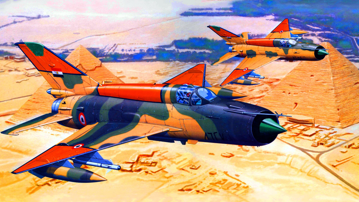 С рёвом форсажа двигателей пара МиГ-21 Ф-13 в пустынном камуфляже прошла над полосой и устремилась в небо. "Расходимся!" - прозвучала команда ведущего, который начал энергичный набор высоты влево, ожидая того-же от египтянина.