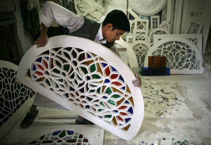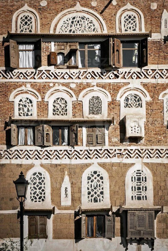 🟡 Это доисламский элемент — полукруглое окно в белой раме, в которую вставлен цветной стеклянный витраж.