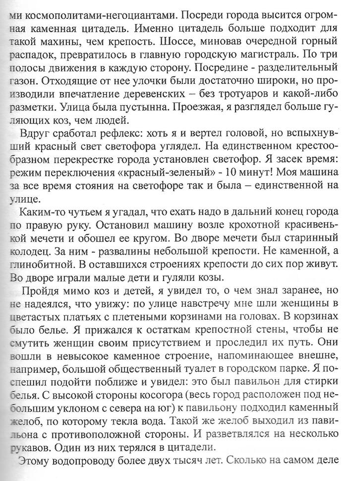Сквозь густую зелень виден пышный фасад какого-то здания. Люди в цветастых одеждах куда-то спешат… Впереди показалась площадь. Столпились верблюды, горы фруктов, пестрые ткани и непонятная речь. Шумный оазис востока, подумалось мне. Но женщины здесь ходят с открытыми лицами. Они весело щебечут стайками то тут, то там и сверкают золотыми драгоценностями. Но более всего поражают дворцы, которые здесь на каждом шагу. Их фасады выточены прямо в скалах. Вернее, скалы выступают своими рукотворными фасадами прямо в долину, которая превращена в улицу. Зубчатый орнамент, колонны – все из отполированного до блеска розового и желтоватого камня.