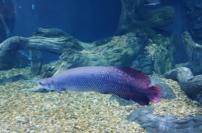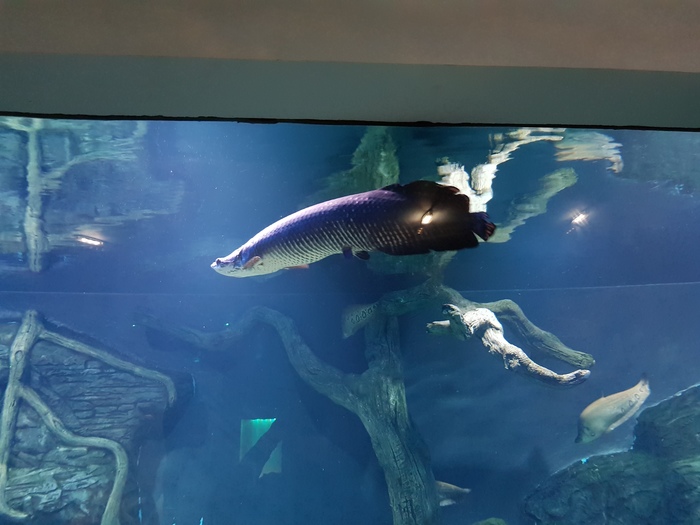Любимое занятие арапайм - лежать на дне и ничего не делать. Причем выбирается такой уголок, чтобы никто не надоедал=не видел. Поэтому, многие посетители проходили весь океанариум, и даже представить не могли, каких гигантов они пропустили. Но как только к аквариуму подходил я в любой одежде - они тут же выбирались из укрытий и подплывали ко мне. Это больше похоже на собаку, радостно встречающую вернувшегося с работы хозяина, нежели на золотую рыбку подлетевшую к стеклу, когда по нему постучали.