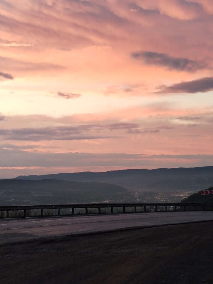 Ну а пока мы все тусим в Башкирии, греемся на местном солнышке. Вот вам фото с дороги, застали красивый закат на уральских горах