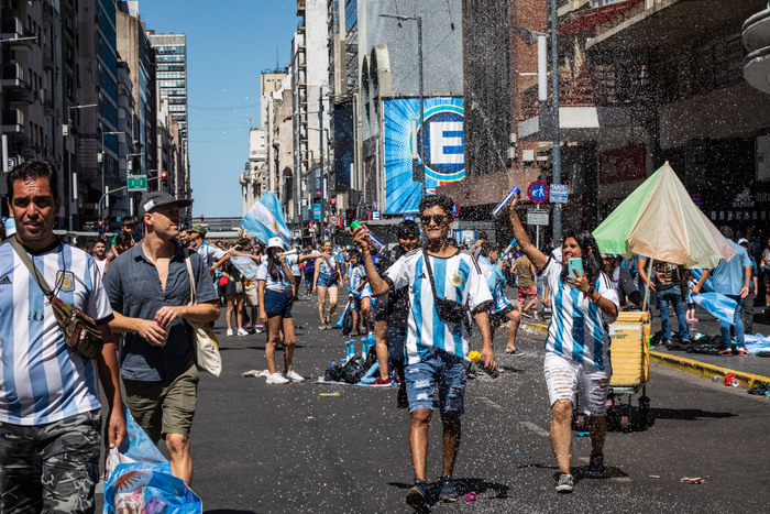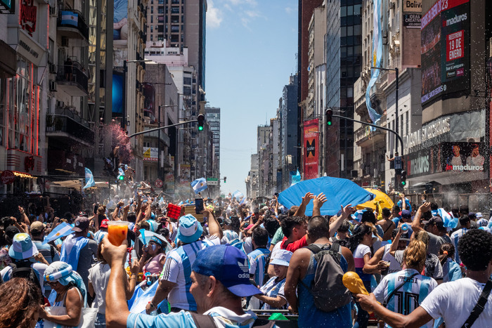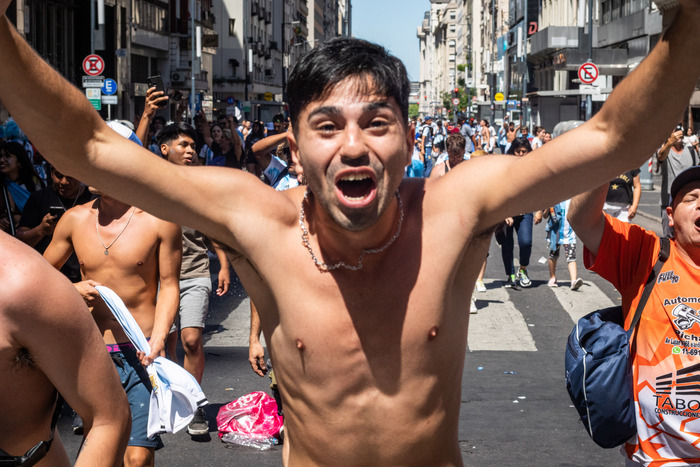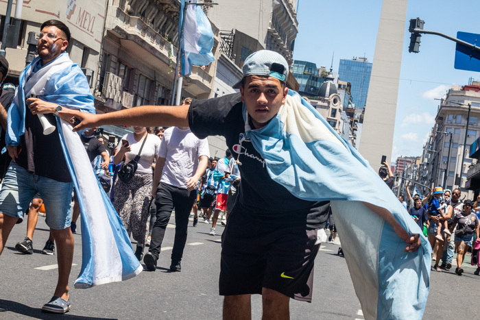 Люди ходят прямо по главным автомагистралям, ездят с открытыми дверями машин и скандируют "Аргентина!", вместо автобусов - обычные рабочие грузовики, в кузова которых забираются люди. Доходит до того, что на ЖД вокзале открывают ворота и пускают всех людей на пригородные поезда бесплатно. Это национальный праздник.