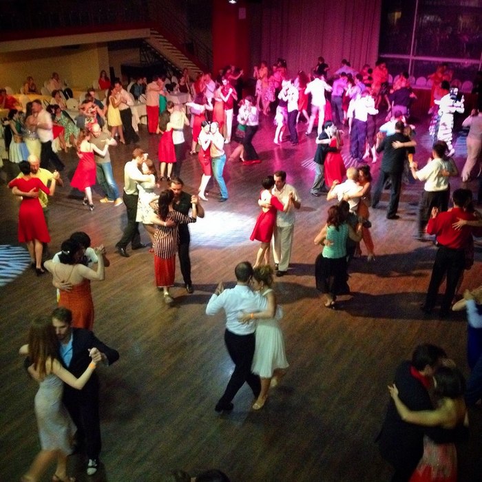 Еще часа два в том же состоянии я пыталась утихомирить диалог в голове – «Иди домой спать, здесь больше нечего делать». В самом деле помимо всех тех плюсов и полученных впечатлений, которые не хотелось ничем случайно нарушить, были и минусы. Особенно относительно самого зала – он был огромный и люди в нем рассредоточены равномерно по всей территории. Часть еще заинтересованных людей гуляет по залу туда-обратно в поисках пары на ближайшую танду. А у меня все время разбегаются глаза по всему этому пространству, не понимая на чем здесь можно сконцентрировать внимание.